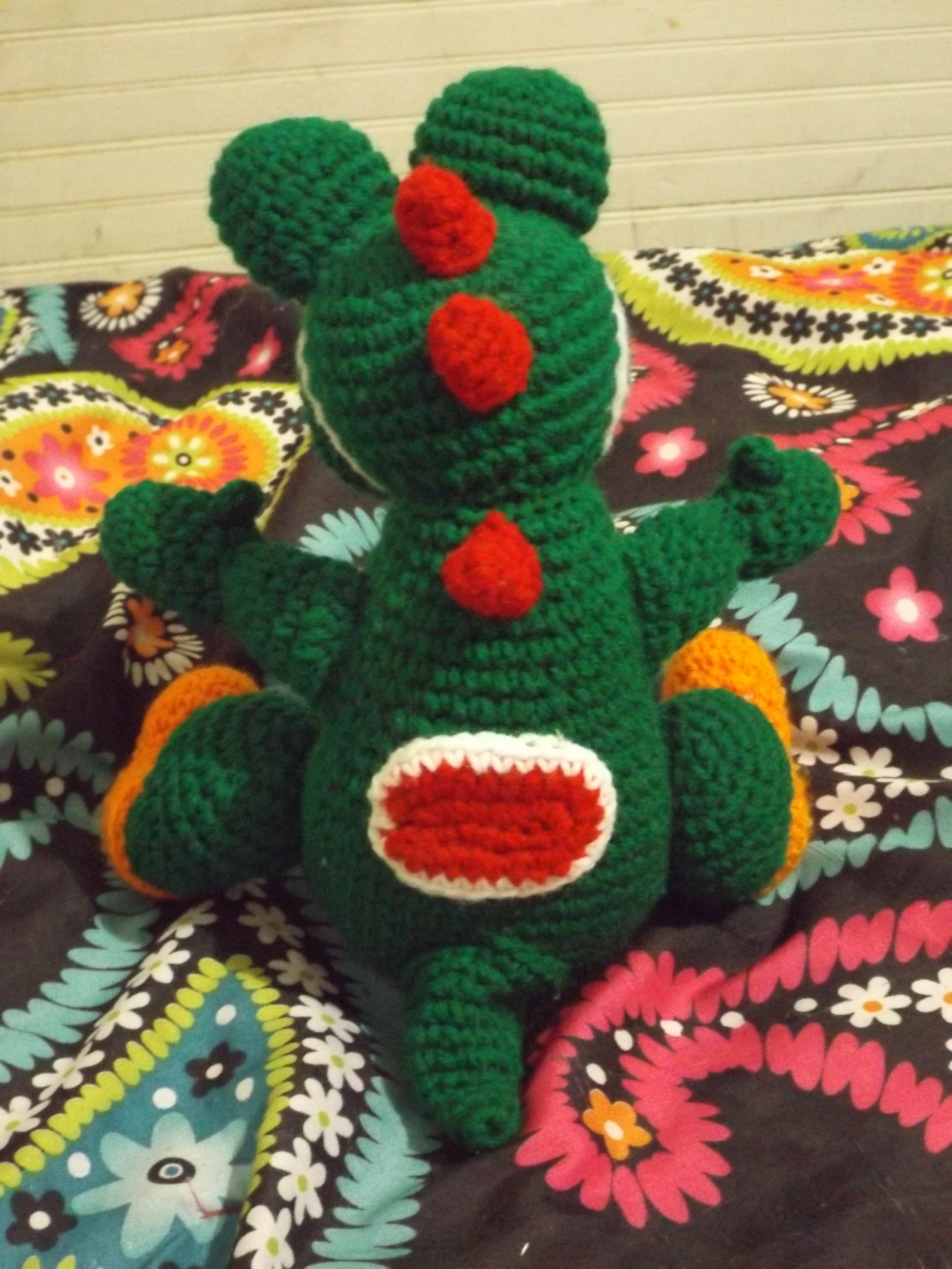 He is a crotchet master piece that can be found at Addy’s Attic. I craft however crocheting isn’t one of my skills. I’m always amazed by the fantastic creations people are able to make with yarn. His coloring is bright and vibrant. He also has a perfect amount of stuffing in him. He is very cuddly.
