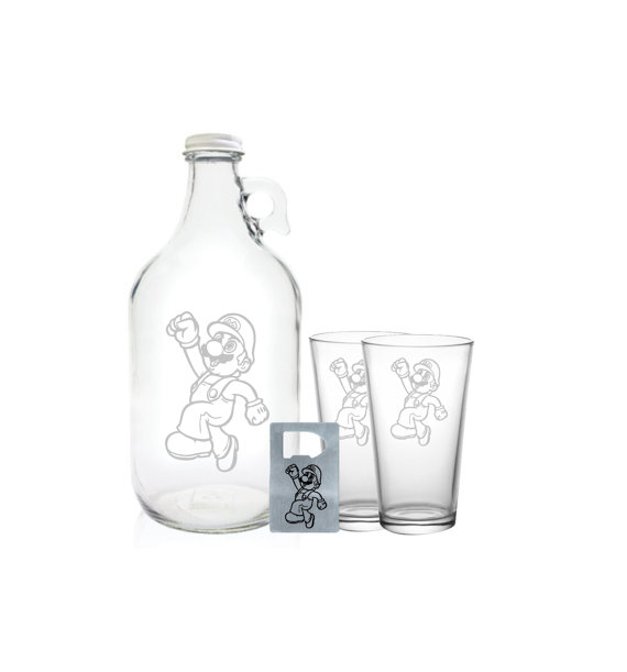 As you can see there are several items you can choose from such as a 64 oz. Growler, a stainless steel bottle opener, or pint glasses. These sets make awesome gifts. The etching is beautifully done. I love the detail that Mario has. This pint makes me want to break out my old school games to play Super Mario.