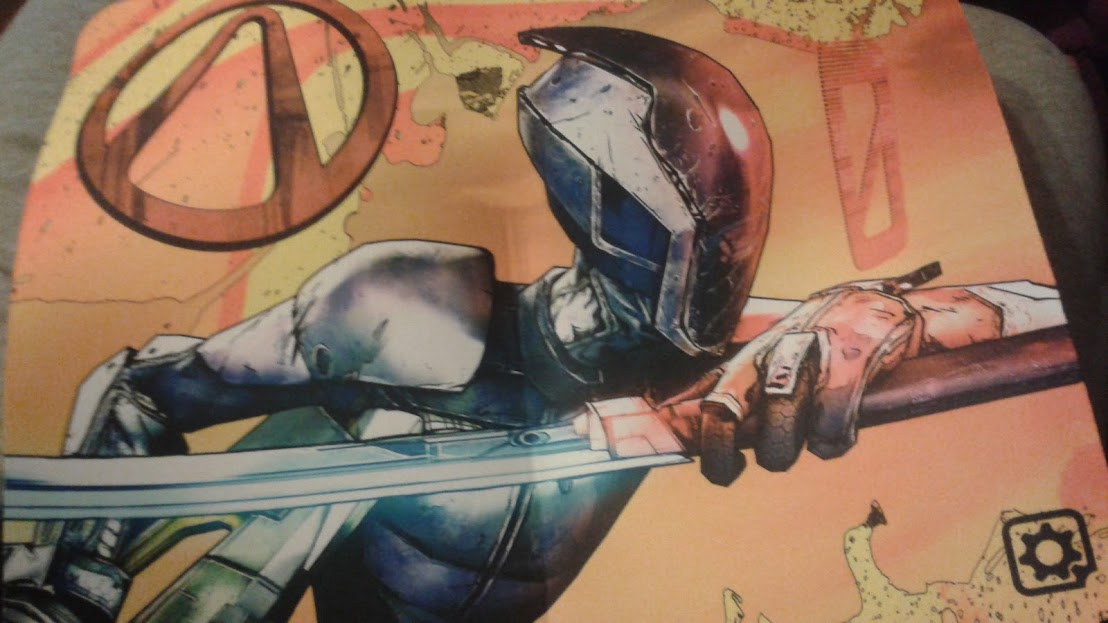 This is an over sized Boarderlands gaming pad. The coloring on this is fantastic. I don’t know what my son is going to do with this but he loves Boarderlands.