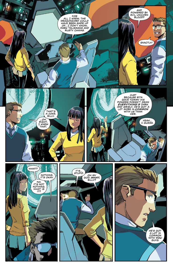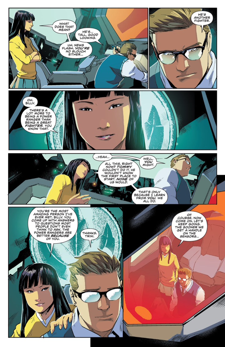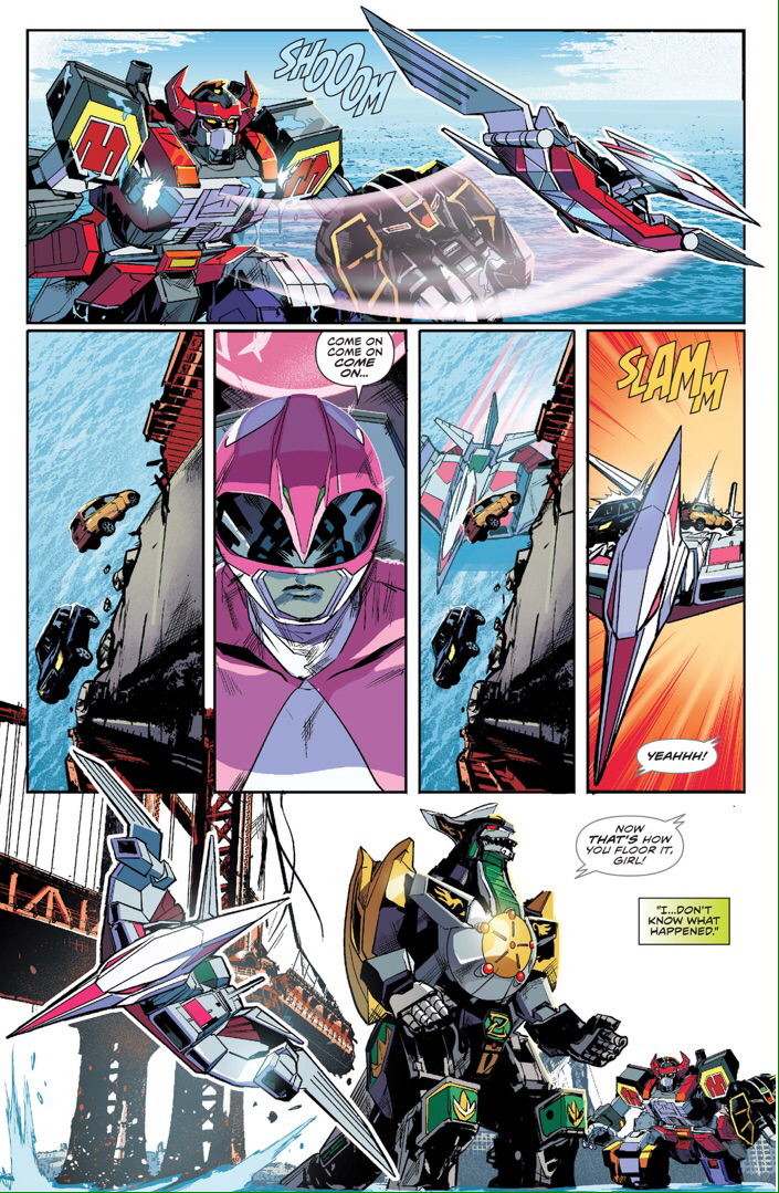 And of course, the action scenes themselves are nothing short of amazing. And what’s great about the comic book medium is that there are no limitations in regards to how to set up an action scene, the only limitations are the artist and writer’s own imaginations. And as such audiences get treated to not just the kind of action Power Rangers is known for, but with new additions that make the scenes more interesting, like Kimberly disconnecting her zord from the Megazord to save some people from the bridge. Because of the constraints of using footage from the “Super Sentai” series Saban’s team had to make do with what they had to work with and they couldn’t put those kinds of scenes in, however Kyle Higgins and artist Hendry Prasetya don’t have that problem.