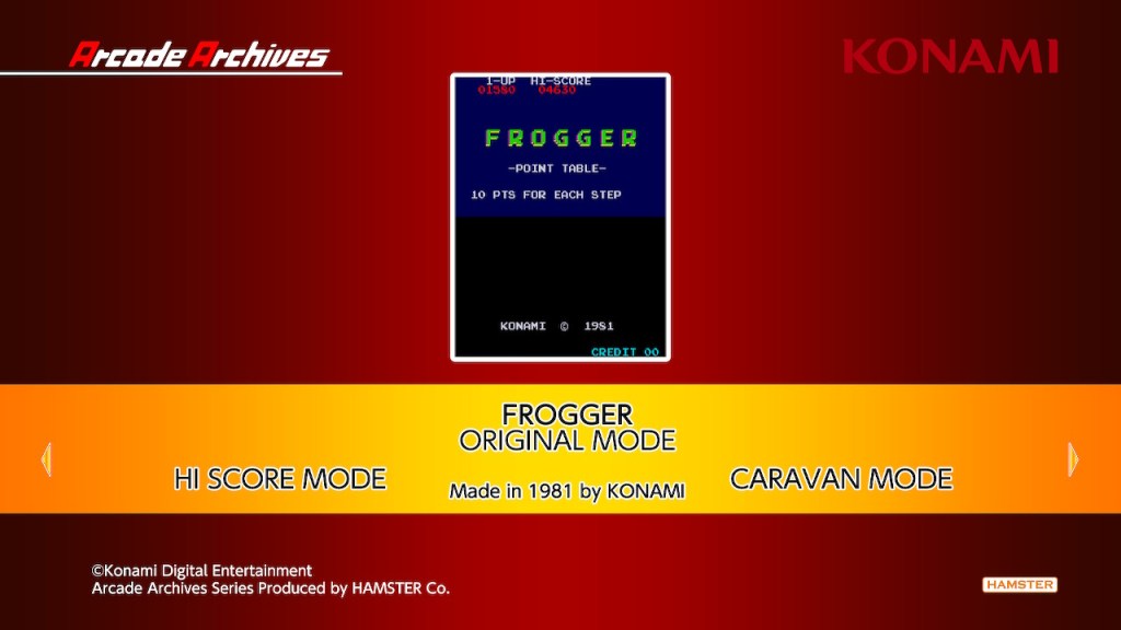 Like all classic Arcade games, this one has ways of boosting your score. With every step upward you take you gain 10 points. With every successful cross to the other side you gain 50 points, with every five frogs you save you get 1000 points, and with every remaining second you still have when you cross to the other side to gain an extra 10 points. Not too shabby in wracking up high scores.