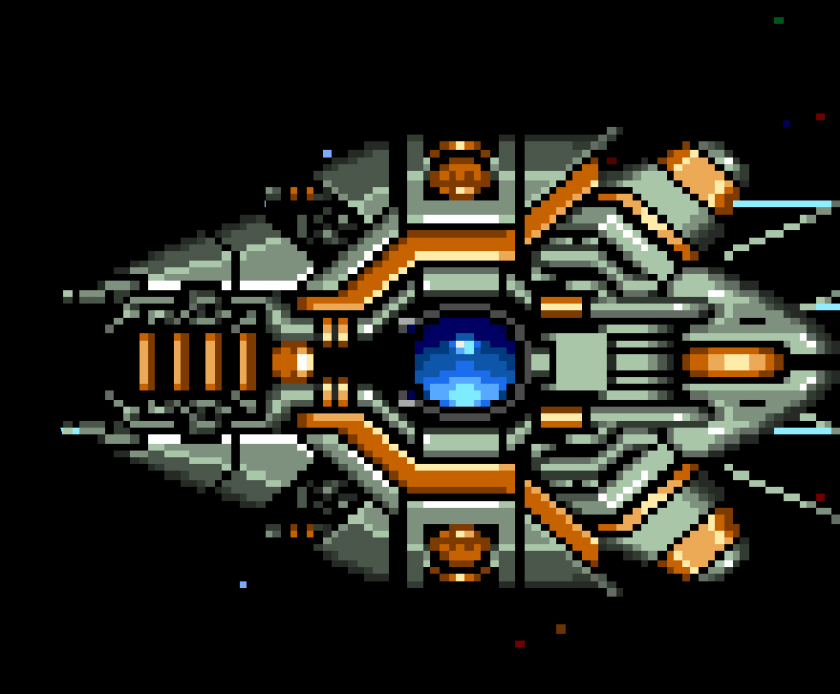 Get through each round, collecting capsules by destroying enemies and build up your ships power quickly- as you are going to face the core warship. Destroy the four shields to blow up the blue glowing core- destroying the warship.