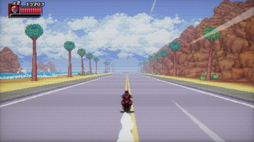 So while you have the tried-and-true fighting/platforming elements that most games from the late 80s/early 90s would have, there’s also platforming on rails when you are either in the zord/motorcycle stages. And those stages will definitely make you feel like you are in said cycle/zord, trying not to run into things while at the same time get to your objective, and it’s tweaked just enough for you to get that feel of immersion which really adds to the gameplay a great deal.
